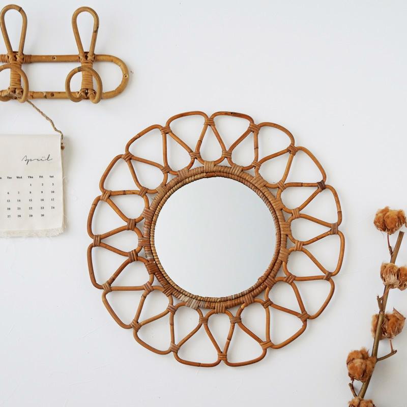送料無料 化粧鏡 ラタン 壁掛け 卓上両用 ミラー 韓国インテリア 韓国雑貨 おしゃれ かわいい カフェ インテリア 北欧 雑貨 カフェ風 韓国女子 Sns映え インテリア雑貨 ナチュラル 北欧インテリア