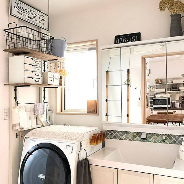 洗濯機上をおしゃれな収納空間に ランドリールームの収納アイデア集